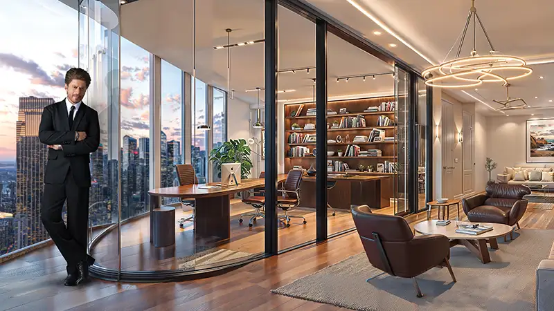 Rising majestically along the iconic Offices on Sheikh Zayed Road, SHARUKHZ redefines the concept of premium office spaces in Dubai. This 55-storey commerical architectural marvel is not just a building; it is a symbol of ambition, success, and legacy. Inspired by the extraordinary journey of Shahrukh Khan, SHARUKHZ pays tribute to visionaries, entrepreneurs, and business leaders who are determined to script their own destinies. Here, each office space is more than a workplace—it is a stage for innovation, growth, and achievement.